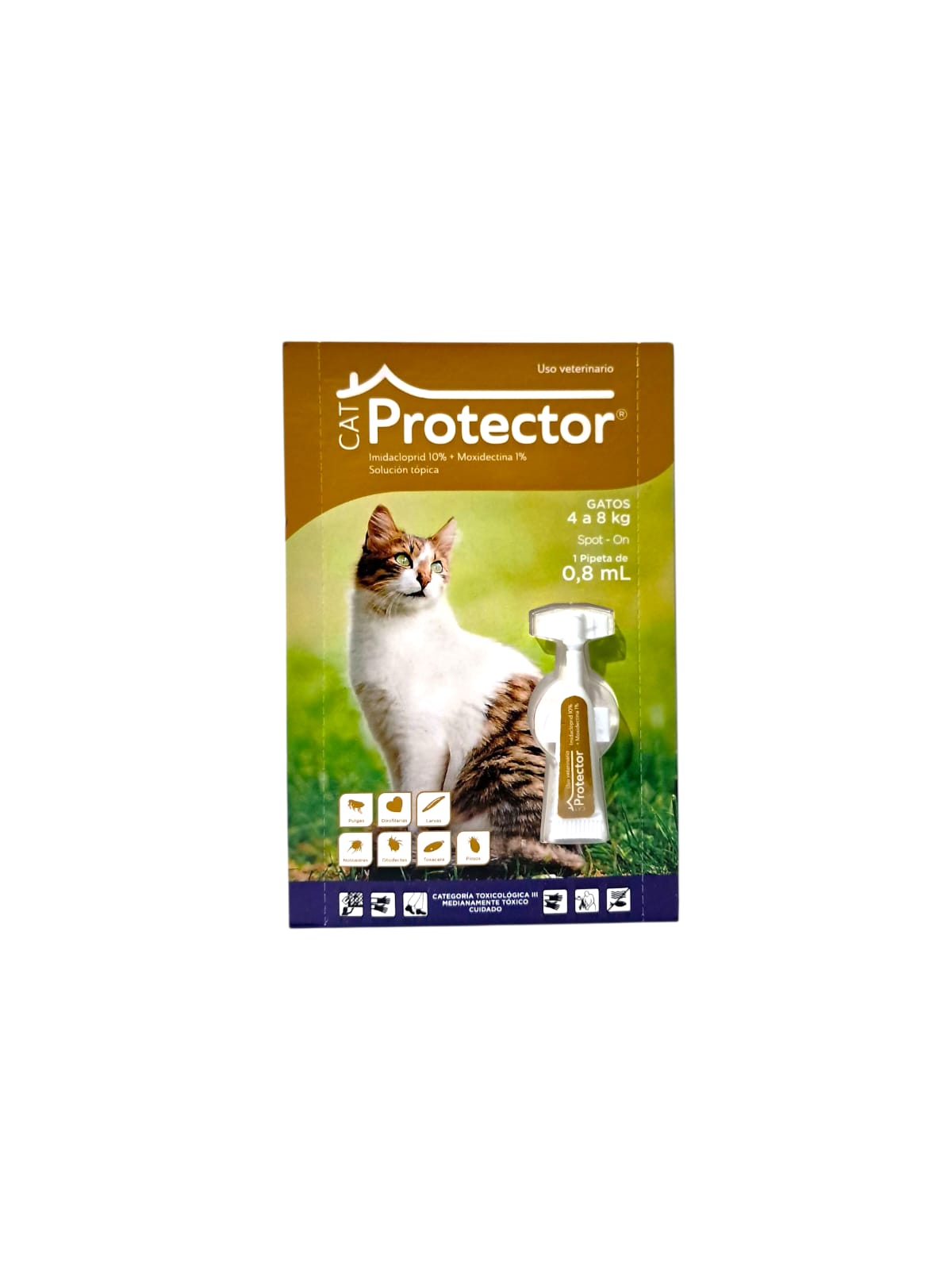 Es una solución antiparasitaria spot-on de uso veterinario, formulada con Imidacloprid 10% y Moxidectina 1%, diseñada para el control integral de parásitos internos y externos en gatos.