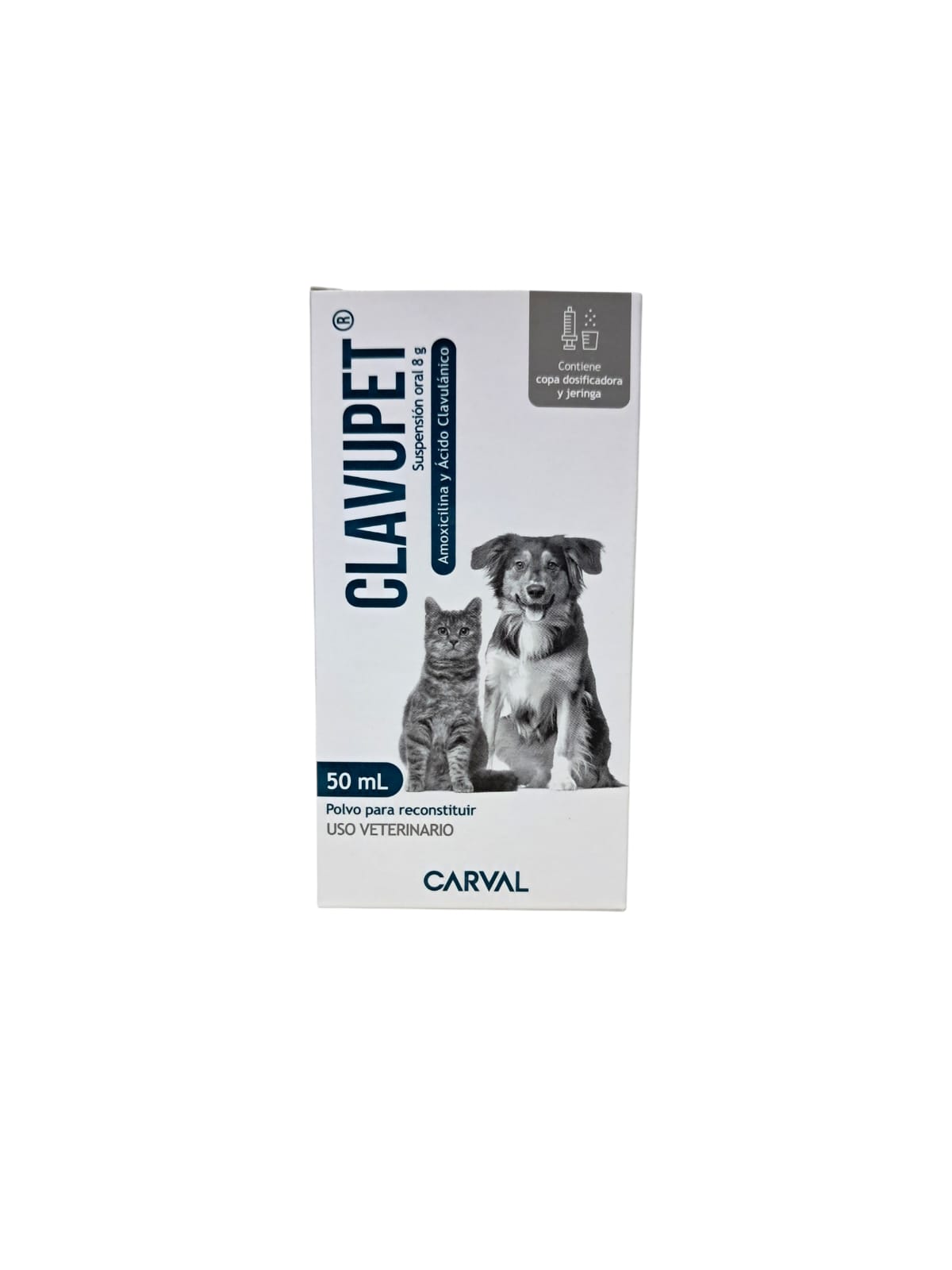 Clavupet Suspensión Oral 50 mL de Carval es un antibiótico de amplio espectro formulado con amoxicilina y ácido clavulánico, combinación que potencia la acción bactericida y ayuda a combatir bacterias productoras de betalactamasas.