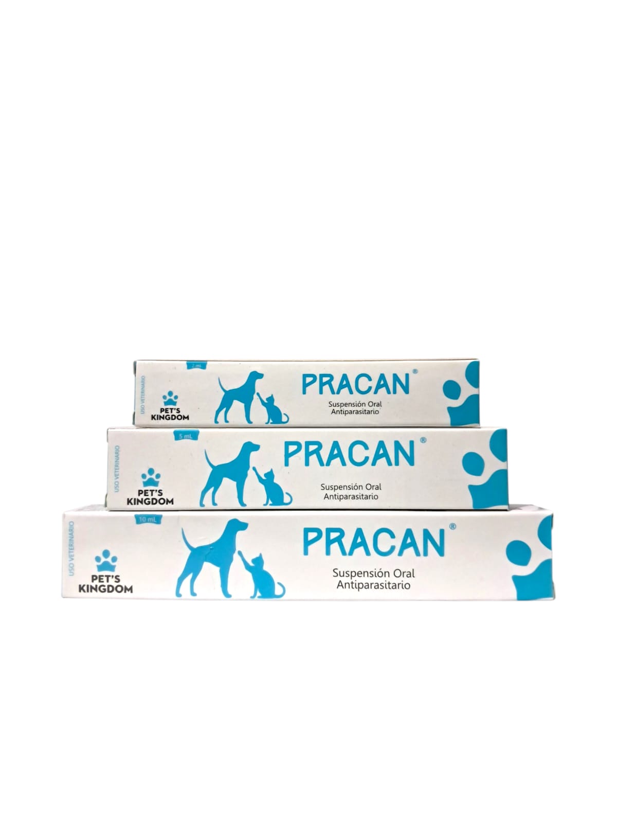 Pracan es un antiparasitario de amplio espectro en suspensión oral, formulado para eliminar y prevenir infestaciones por parásitos intestinales en perros y gatos. Su composición actúa eficazmente contra nemátodos y cestodos, protegiendo el sistema digestivo y promoviendo el bienestar general de las mascotas.