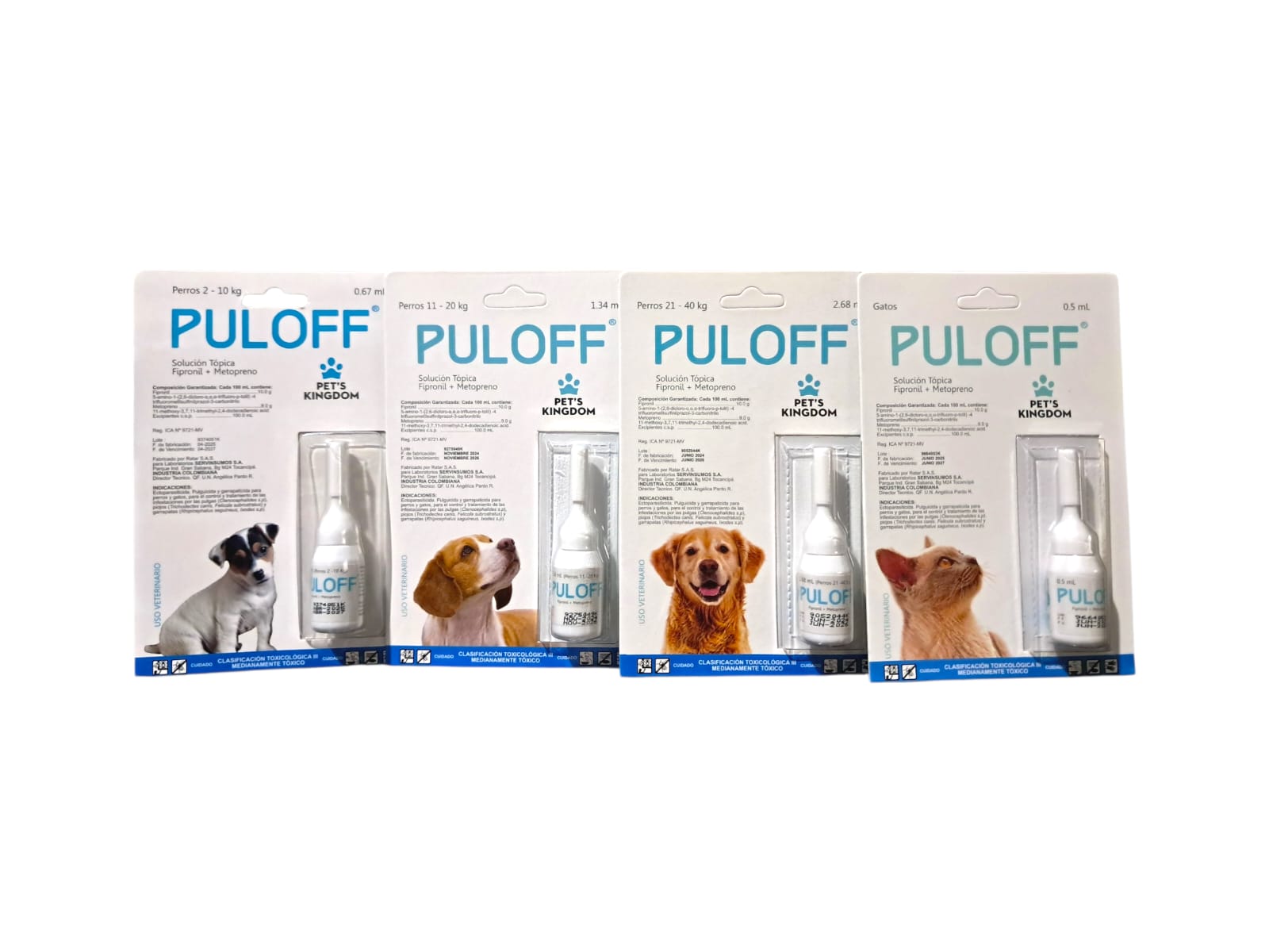 Es un antiparasitario externo de aplicación tópica desarrollado para perros y gatos. Su fórmula combina Fipronil, un insecticida y acaricida de acción rápida contra pulgas y garrapatas, con Metopreno, un regulador del crecimiento que evita la maduración de huevos y larvas, impidiendo nuevas infestaciones. Gracias a su presentación tipo pipeta, Puloff se aplica fácilmente sobre la piel del animal y proporciona protección continua por varias semanas. Es ideal para tratamientos de infestaciones activas o como prevención periódica.